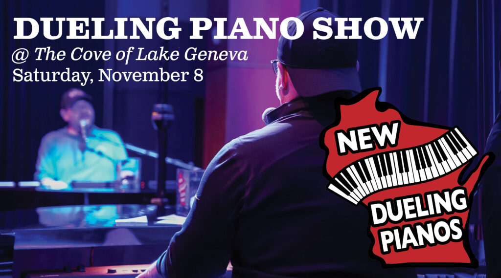 Bringin’ it to The Cove! You are not going to want to miss this one. Wisconsin’s very own NEW Dueling Pianos is taking on Lake Geneva for a night of non stop fun. If you have seen them before, you know the energy is unmatched, and if not, here is your chance. This request driven show mixes comedy, music, toasts, and roasts that keep the crowd clapping and singing along. Reserved tables are available now for Saturday, November 8. Doors open at 6 PM with the show from 7 to 10 PM. Adults only. Call The Cove for the special Dueling Discount promo to stay the night at 262-249-9460.