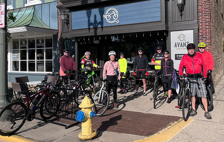 Avant in Lake Geneva and La Grange rent and service bikes. They also have a café at both locations. Riding groups meet weekly at Avant in Lake Geneva on Wednesdays and Sundays.