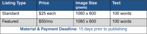 Place your event where visitors look first on the WCVB website, with quick details and a direct click-through link. Standard listings can be posted up to a year in advance for a one-time fee. Featured listings are pinned to the top for $50 per month and appear in the standard list as well and when not featured.