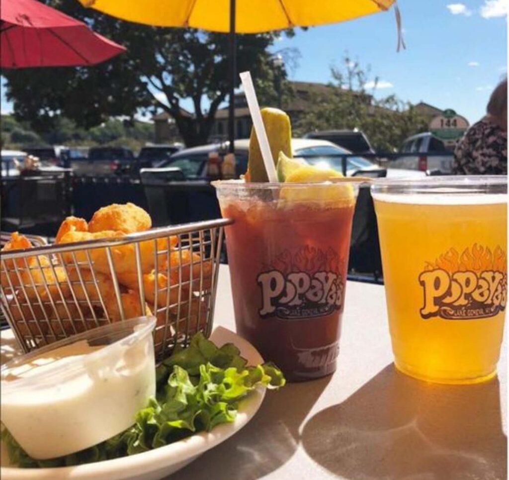 Recipe for a perfect Bloody – 2 parts Bloody Mary (vodka-duh)- 1 part cold crisp beer- A whole lot of sunshine and an incredible view of Geneva Lake! Mix well and serve cold on Popeye’s outdoor seating. Best shared with good company.