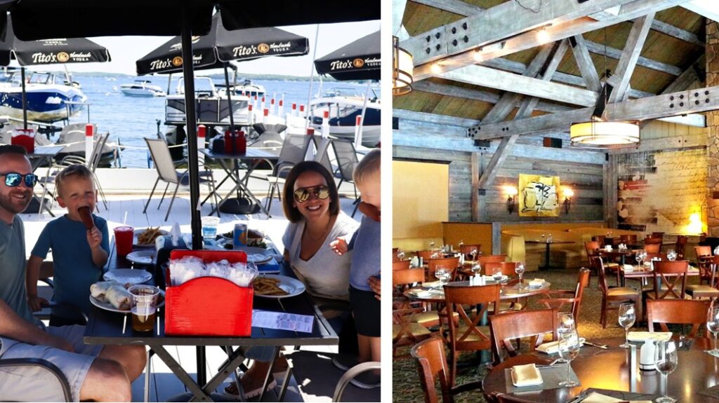 Situated directly on Geneva Lake’s lower harbor, Oak & Oar at the iconic Geneva Inn offers the best sunsets in town. With both indoor and outdoor seating, this restaurant creates an elegant yet relaxed atmosphere. Guests savor Wisconsin-inspired boards, burgers, sandwiches, and entrées—complete with a full bar of bourbons, beer, and wine—all while soaking up lake views. - On Water: The Boat House Bar & Grill (photo right)