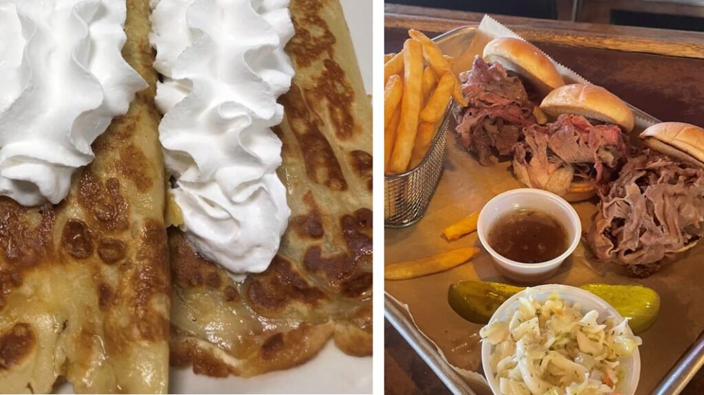 A hometown diner, beloved for its Swedish pancakes, Friday fish fry, and friendly, fast service—a small-town charm highlight - On Land: Pat’s Brew & ’Que (photo right)